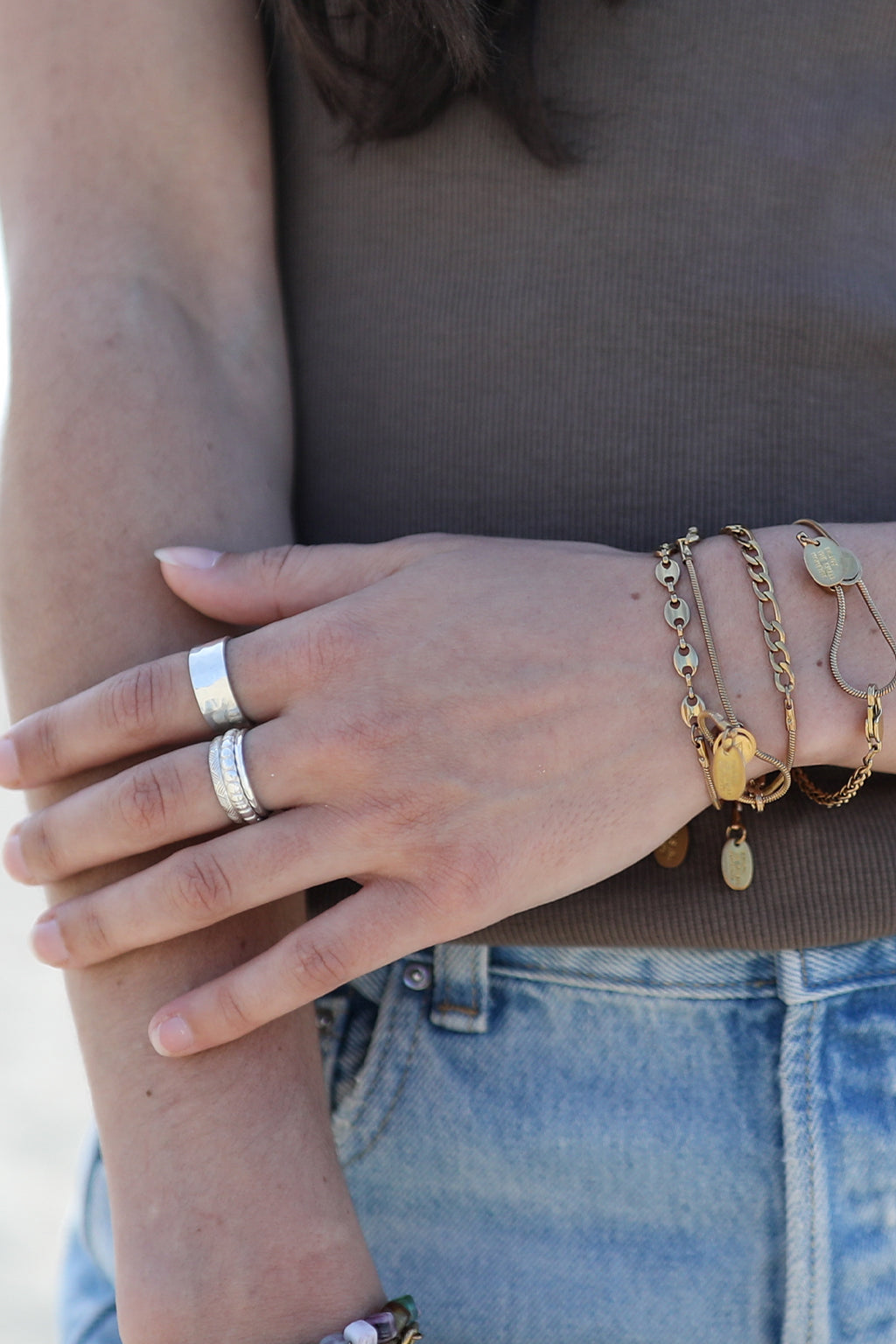 A little reminder of what matters most, wrapped around your finger. Crafted in solid sterling silver. Finished with a hand-hammered texture and high-polish shine. Designed to stack or wear alone. Made to last.