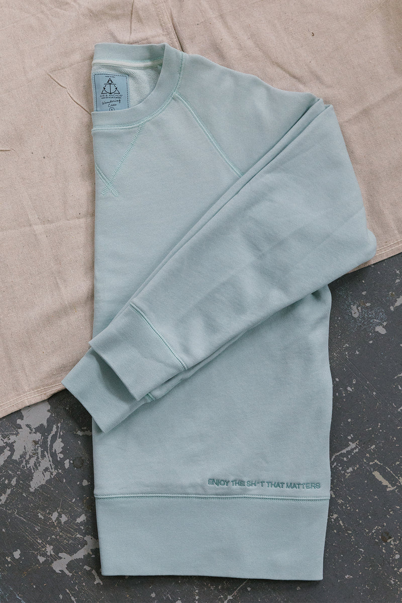 A great deal of effort went into the making of your new favorite sweatshirt. Perfect for layering, this crewneck was designed from start to finish by us, and manufactured in a family run-factory in Lima, Peru using the softest cotton in the world. Cozy enough to lounge all day in, but refined enough to wear out, you can literally throw it on and go anywhere. Soft and cozy to keep you warm, the Wandering Crew is made from 100% Pima Cotton, with a vintage wash that gives the look and feel of a perfectly worn in sweatshirt, and crafted with all the classic details- complete with a crew neckline, ribbed cuffs and waist, and a small tonal embroidery, to remind you to slow down and enjoy the sh*t that matters. Ethically made and designed to last, you’ll never want to take this off.