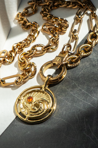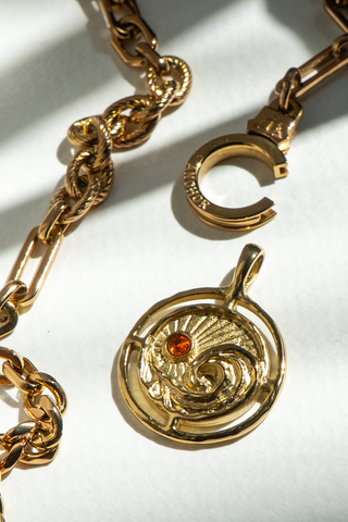 A one-of-a-kind, patented spring closure that pulls triple duty- a clasp, a charm holder, and a ring holder, all in one package. Each one, meticulously crafted with love, one by one, by skilled hands right here in Cranston, RI. Patented and exclusive to us, it's our secret weapon that sets us apart from the rest, that final touch that takes every piece to the next level. Layer it, love it, make it your own.
