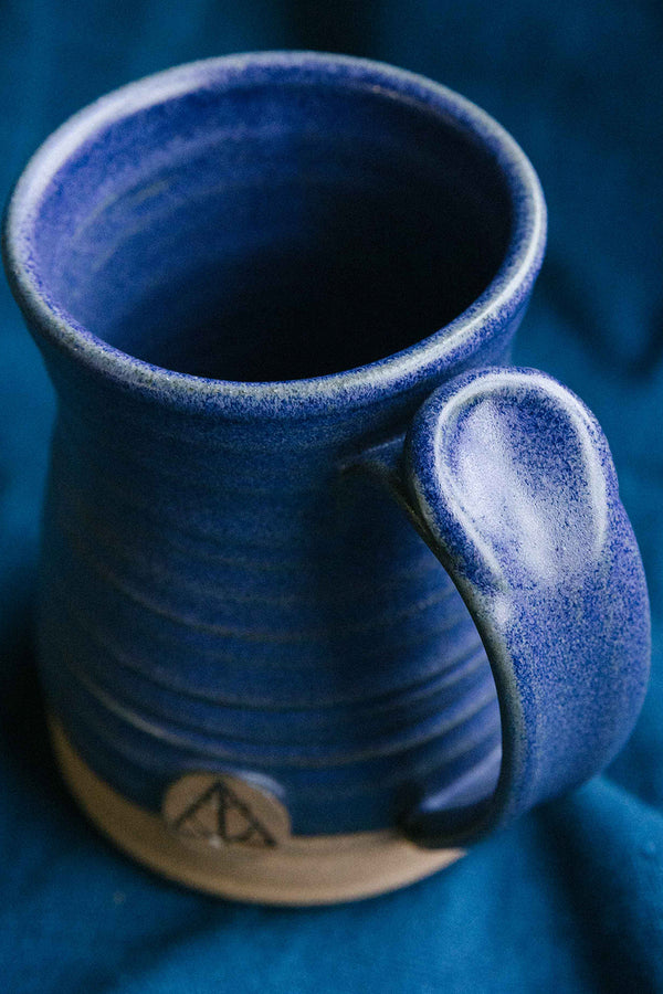 Heavy in stature, but designed with it's very own thumb press so you can evenly balance its weight before raising it up for the first sip. Wrap your hands around this stoneware mug. Locally handcrafted with the utmost care and style. Comfortable to hold, durable, microwaveable and dishwasher safe. Shop our stoneware mugs for your coffee and tea today!