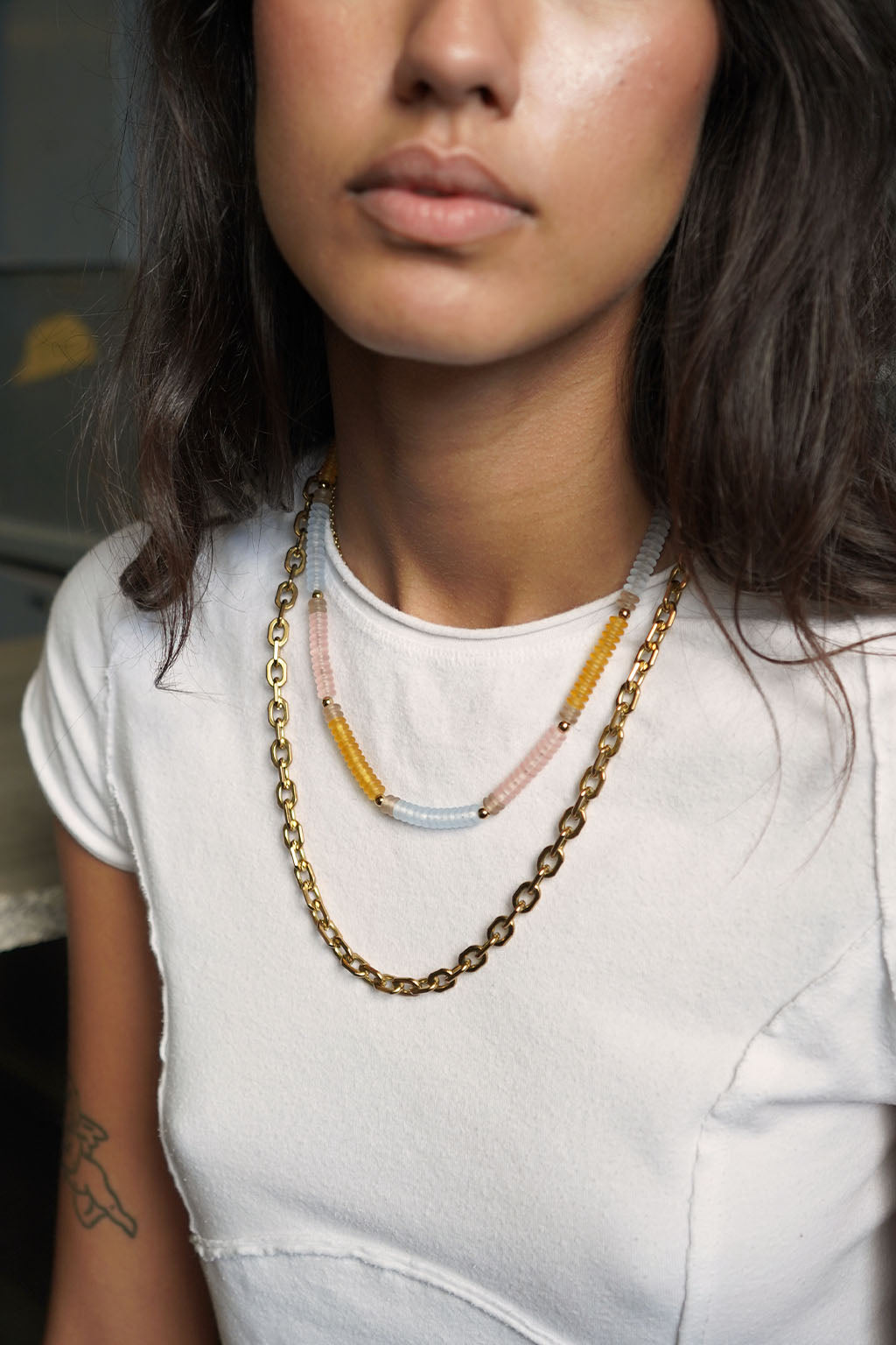 A little longer. Sits in the zone (you know the one). Perfect for oversized charms, it layers well, but stands alone even better.