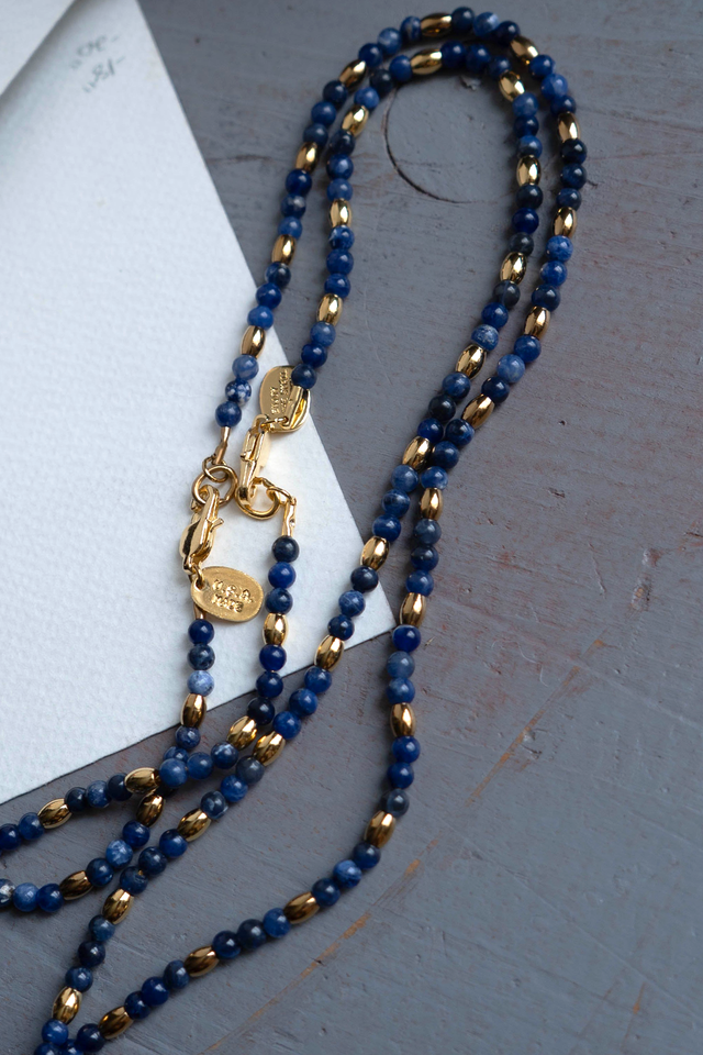 - Hand-strung genuine gemstones and stainless-steel beads on stainless steel chain