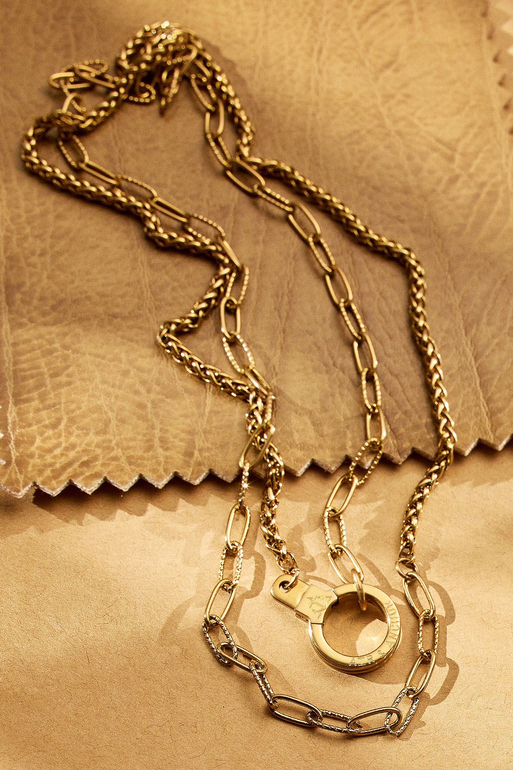 A little longer. Sits in the zone (you know the one). Perfect for oversized charms, it layers well, but stands alone even better.