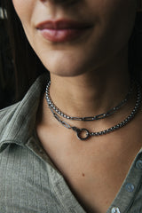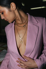 Sits right at the base of the neck. Clean. Controlled. Close to the pulse. Perfect for stacking or making a statement on its own.