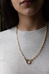 Sits right at the base of the neck. Clean. Controlled. Close to the pulse. Perfect for stacking or making a statement on its own.